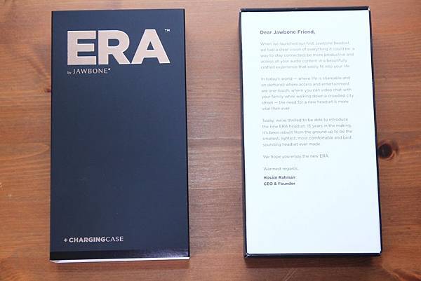 打開包裝盒,就看到一封「致使用者」的信,署名是Jawbone的CEO&創辦人Hosain Rahman呢!