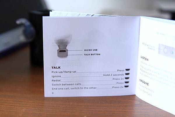 Jawbone Era包裝內附贈了說明書,雖然近期電子產品的說明書我已經越來越少瀏覽了,但Jawbone Era的一些快捷鍵都記載在說明書上,建議還是看一些。