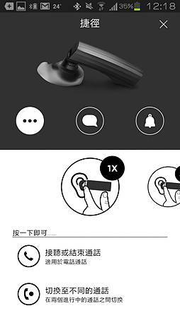 最左邊的捷徑,點開後能看到說明書上的那些快捷鍵教學,像是接聽、掛斷、忽略等等功能,都是用一顆按鍵完成的。