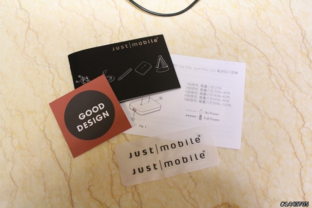 配件的話還有型錄,中文說明書,Good Design標章,Just Mobile貼紙等等