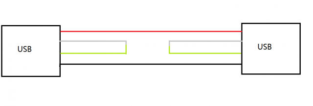 這就是剛剛提到的跳線,正常的USB 2.0內部有四條線,紅、白、綠、黑,