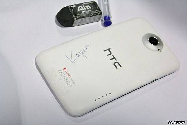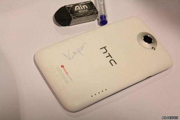 One X機背材質的顆粒非常細緻,甚至用原子筆在One X背面書寫,墨水也無法滲透One X背面的材質。