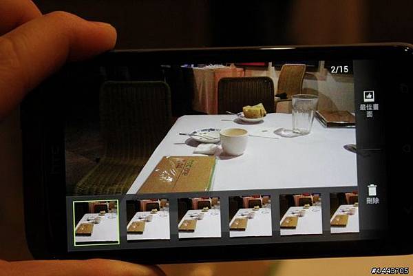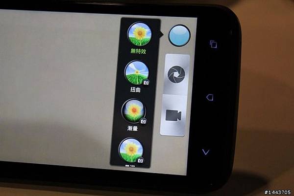 這是One X的相機界面,沒有了切換拍照和錄像的按鈕,因為相機快門和錄音開始的按鍵都在同一個畫面上。拍照時只要按住快門鍵,就可以連拍,最高達到99張;錄影解析度最高志願到1080p Full HD,並支援在錄音中直接拍照。