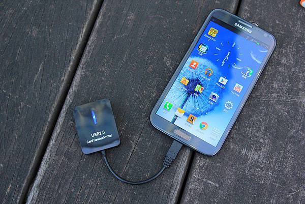 台灣設計、中國製造的的讀卡機,標明Samsung Galaxy SII/SIII/Note專用,理論上應該支援OTG的裝置都能使用才對!實際測試Note 2也可以使用沒有問題!